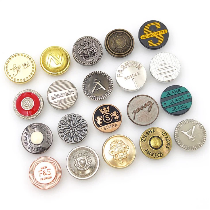 Våra jeans -knappar och nitar inkluderar graverade, debossade, folie, utskrift, laser, etc. . Alla typer av logotypbehandlingar etc;
